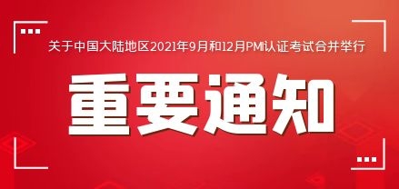 关于中国大陆地区2021年9月和12月PMI认证考试合并举行的通知